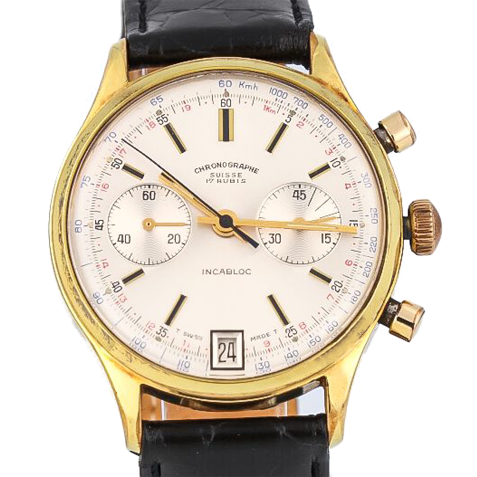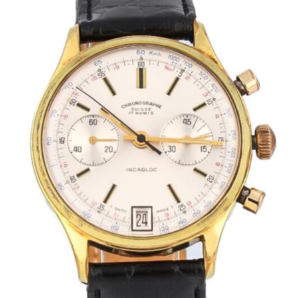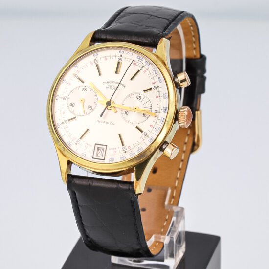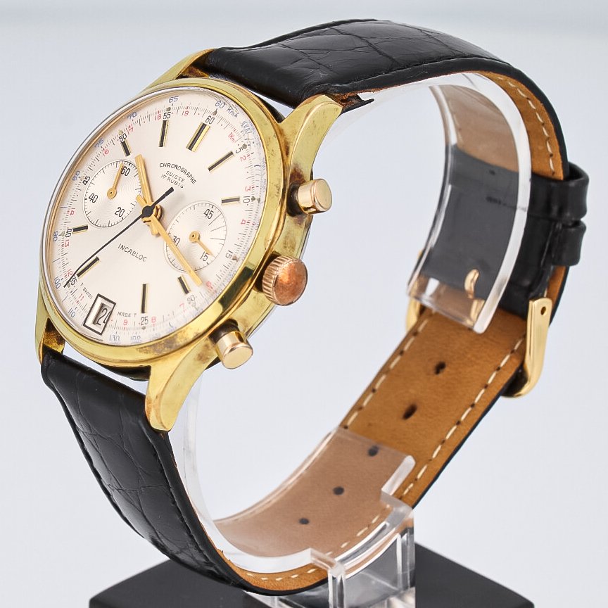 Chronographe Suisse Cie Vintage Double Counter Chronograph Gold Plated 38 mm Rare